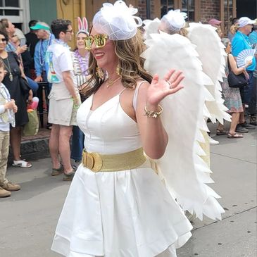 Each Mardi Gras Adrian travels from out of State to enjoy the Carnival Season and serve as one of our fabulous Parade Day Guardian Angels!